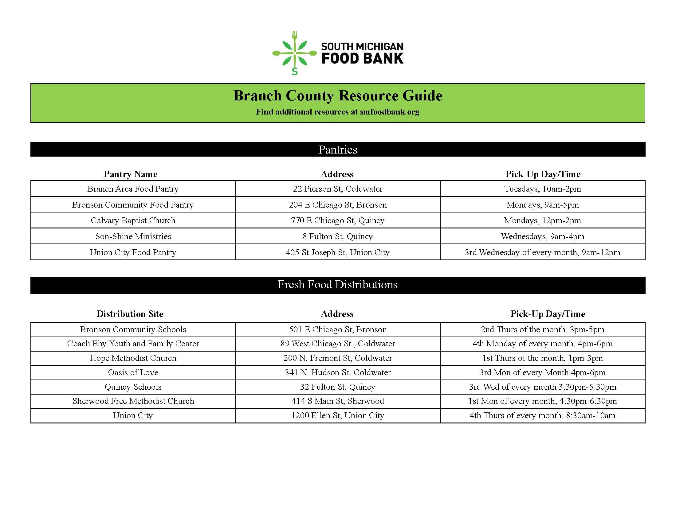 Branch County Food Resources